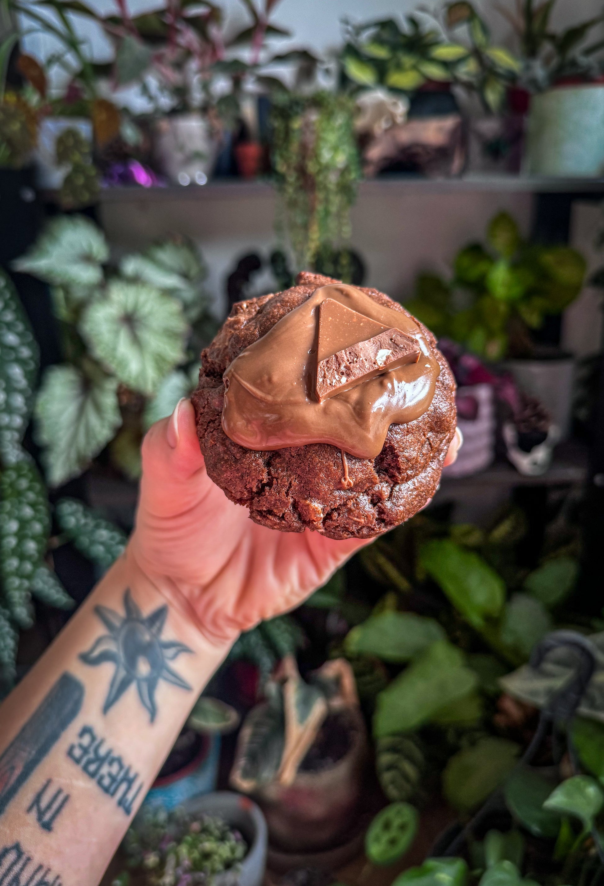 Chocolate cookie dough packed with chunks of Toblerone, stuffed with milk chocolate spread and finished with a Toblerone piece